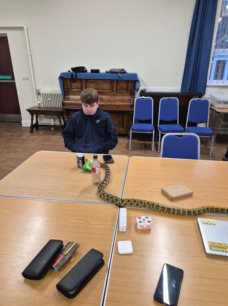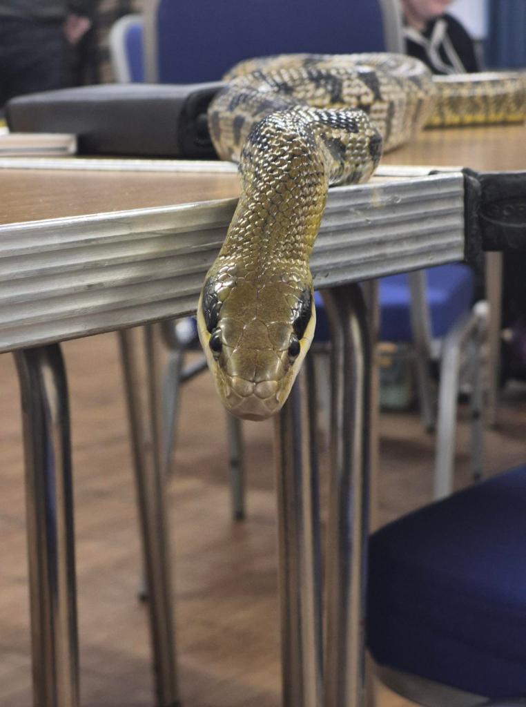 Tarzan joined Izzy and myself at this months’ members meeting for the North West Reptile Club. He is not the most social snake and as many of his species are he is quite flighty and will try and get away. So, whilst I wouldn’t take him to public events yet, he is getting better when I take him to the members meetings and we are getting there slowly but surely. He even met a young female Taiwan Beauty snake called Rukai. Tarzan is nearly 2 years older and as you can see Rukai still has some growing to do!