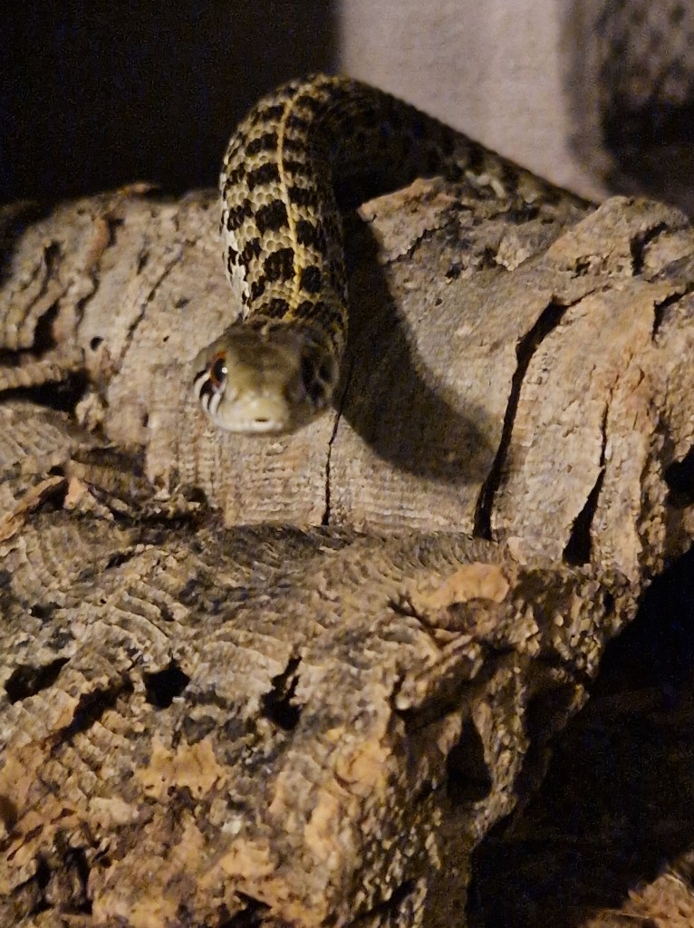 | Nzuri is a female Checkered Garter snake born in 2021. There are around 35 species of Garter/Ribbon snakes. They are found in fields, forests, wetlands, marshes, near bodies of water. Garter snakes are best known as accomplished swimmers, but they are also known to occasionally climb as needed. They are native to large parts of North America, from Canada all the way down through Central America and Mexico. Garter snakes are diurnal, which means that they make great pets as they are active during the day and unlike most snakes Garters thrived when housed together. But ensure you check the sex of your Garters as males and females housed together will give you a heap of tiny live birthed babies! In the wild they will eat amphibians, small fish, and small mammals, in captivity a rodent based diet is usually easily established. Garter snakes are small, slender snakes that come in a myriad of colour schemes ranging from drab brown/greys to more vibrant blues/reds. There is not much guess work required to understand why checkered garter snakes got their name. | |||